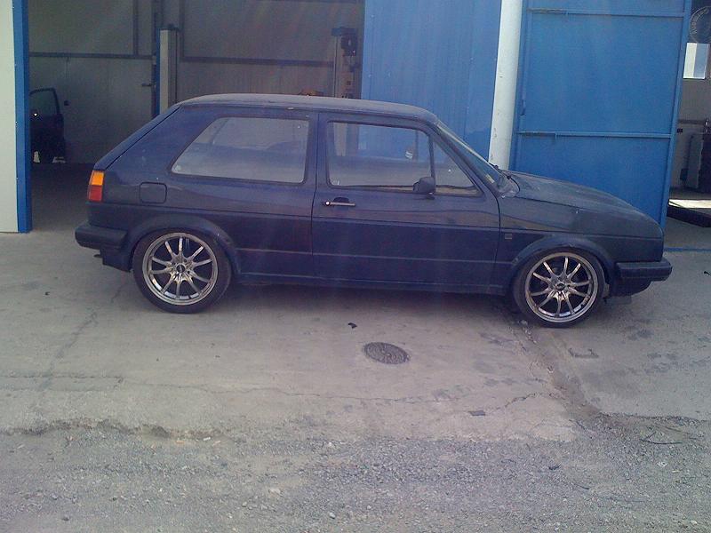 Привет на всички колеги,реших и аз да си покажа ретро количката с която се позанимавах доста време и все има нови неща които искам да направя хахаха.В началото беше 1.6 чист дизел и си мислех само окачване и джанти,но в последствие се оказа че не мога да имам обикновено голфче и се започна...смених 3-4 комплекта 17 цолови джанти докато мирясам...с тия валяци 16 цолови "Brock" B6 9J Et15 4бр. :Mr Green Fun ...Още докато бях със 17-ките сложих -40мм спортни пружини и амортисьори газ+масло "Monroe"-Reflex...но естествено не ми хареса височоната исках по-ниско,за целта си потърсих и си намерих "Coilovers"-"Raceland",и така се стигна до огъване и издуване на калниците.Взех си и хидравлична рейка с помпа...че тия валяци с комбинация с малък волан не ми се отразиха на добре.Смених и няколко вида накрайници на изпускателната с-ма...докато мирясам с 2бр накрайника от гърне "Remus" на ф100 всеки.Които заспаха на вече новата ми генерация на ф60 за новия мотор от пасат 1.6тд с код "SB" на мотора или мощните 82кс :mrgreen ,преди да го сложа му смених основни,биелни лагери,сегменти,главата е с нови клапани и водачи,сложих си и нов к-т съединител с притискател и маховик на 210 мм,дадох дюзите да ги изчистят,както и гнп-то да се ревизира,турбото мислех за по голямо от ккк14,но в крайна сметка дадох да му сменят всичко вътре и си го монтирах.Някаде из времето може да лепна нещо по големичко.Взех си и спирачни дискове "Brembo" Max на 256 мм със супорти и апарати от Голф гти,както и заден мост със дискове който още не съм монтирал.Сложих и накладки "Ferrodo" Racing отпред.От към интериор си изнамерих рекаро салон от голф 2....като цяло много запазен само шофйорската седалка е прокасана,но вече съм си намерил много запазен салон с кори и табло от Golf 2 G60 Rallye.Сложих си и километраж със обортомер,смених и 2-3 волана докато се спрях на "Raid"-300 mm,търся си "Momo"-280 mm(някой ако има да го дава насам).От вън сложих широкия нож и маска без емблема,класическите стопове черно червена хела(още не сам ги лакирал),и си купих нови фарове на които вградих лупи от бмв е36,като си свалих габаритите в мигачите.Взех си и кристални мигачи за отстрани и за отпред,но предните са за широка броня и ще ги вграждам в тясната за да стане уникално.Общо взето това е из времето ще има още промени от към двигателя...след като го разработя мисля да го думна на 1.2 бууст и да му пусна малко повече нафтичка.Закупих си и предна и задна разпънка...задната стана предната иска преправяне.Сложих си амортисьори на предния капак,и най-новото са уредите "VDO" от ауди купе(който се чудя как да вържа)