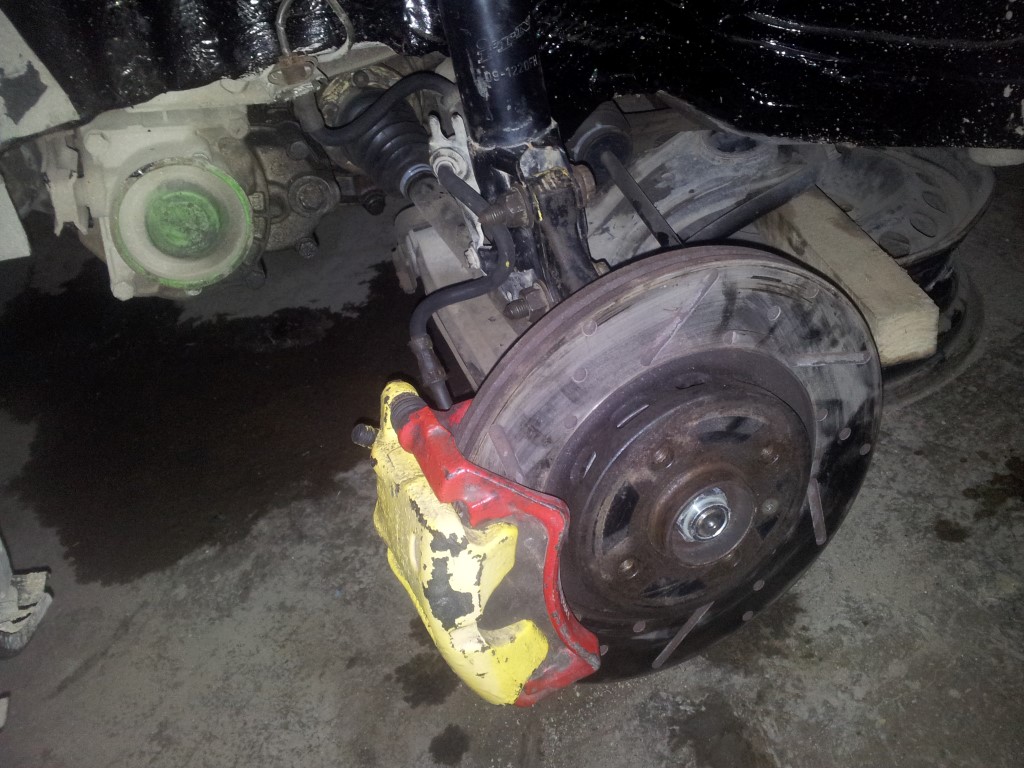 Както всеки който ме познава знае,че съм доста решителен и кажа ли нещо става :mrgreen След още един пореден ден дъжд,студ главоболия и разкарване вече имаме нови джанти,след това се поразходих за задни маркучи за спирачките и нови маншончета за водачите на супортите,ВЕЧЕ НЕ СМЕ НА ТРУПЧЕТА :11 а за протокола 16-ките не искаха да влизат и пак опираха ама тоя път си поиграх с шлайфа супорта си го отнесе с около 4мм :Mr Green Fun