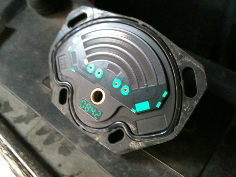 Стъпковото се мери на горните 2 пина/1и2/,при натисната и пусната кнопка на щока/отворен и затворен дросел/ трябва да показва верига в едното положение/3-200ома/ и липса на верига в другото.