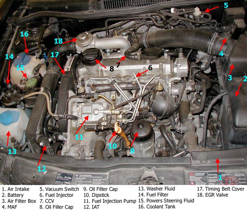 Това е снимка от нета на мотор ALH доколкото виждам,може и да има малки разлики но идеята е ясна,на дебелите маркучи излизащи от главата.