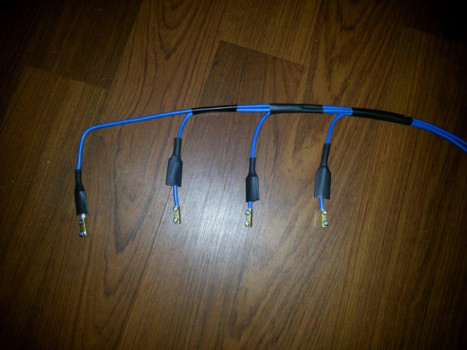 След това си правиш "инсталация"със кабелни обувки и 4 кв кабел многожичен,аз я направих двойна както е оригинално две по две свещите паралелно.Хубаво е със силиконов кабел да е макар че мойто е временно със обикновен едножилен.Кабелните обувки да са от тези със изолация към кабела и кримпвани с клещи за тази цел.Тегаво е после запояването към оригиналната инсталация,но пък ефекта е чуден,може да не е много красиво но работи безотказно.