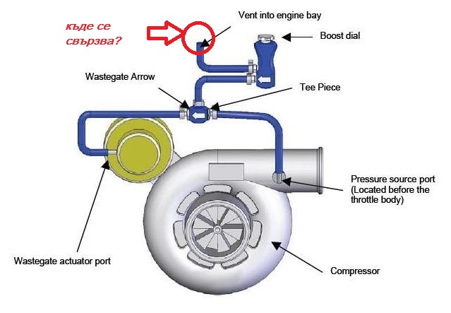 paco в тази схема на свързване която си пуснал необходимо ли е да навивам westgate-та на турбината,в смисъл такъв сега турбината ми надува на 0,6 ,ако не и навия нейният westgatе и сложа този буст конторлер ,от него мога ли да я надуя да прави по голямо налягане без да се занимавам да надувам нейният гейт и ако става така към коя от двете тръбички трябва да вържа контролера и накрая маркуча от конторлера къде в двигателя да го вържа ?мерси предварително ,ще кача снимка да посочиш ако си запознат към коя тръба се връзва.