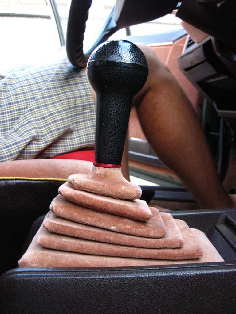 Тия дни се захванахме с багажника.Мокетът вътре беше много вехт и миришеше зле.Изхвърлихме го и сложихме нов чист червен мокет.Освен това жена ми "тунингова" скоростния лост.