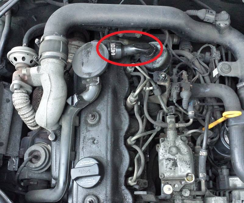 И това дето е от дясно на огрденото в червено аз го нямам ....но съм го виждал на много други ...да не е в него проблема ....Да не би то да задържа нещо вентилацията на картерните газове