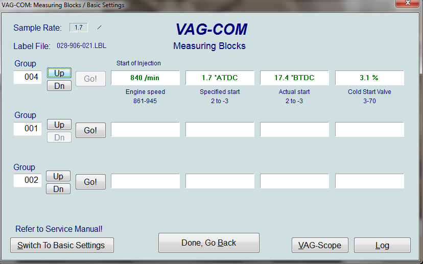 след като запалих колата,мотора работеше ужасно шумно и колата не ще да върви.закачих я на ваг-ком и ето резултатите.