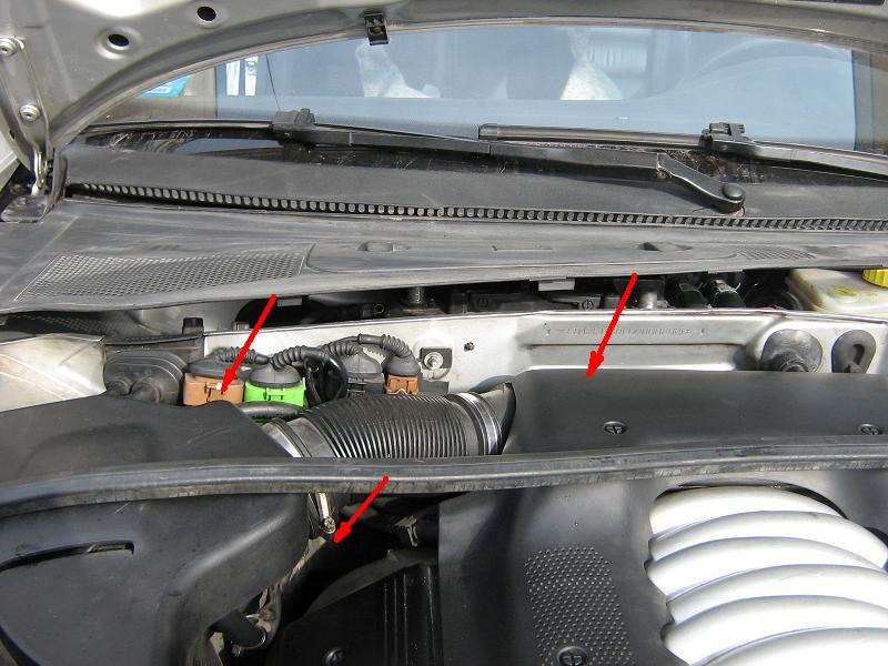 3. Премахваме малката пластмасова кора под чистачките. Тук видях малко зор а то било мн. просто и лесно. Кората се държи на две щипки, в средата и в края където е кутията на компютъра (шофьорската страна). След което кората излиза вертикално на горе, като също е желателно да се започне от някой от краищата и. Не се дърпа на пред или на зад! Само на горе. Излиза лесно. Идеята е да получим достъп до кутията на компютъра, кутията на филтъра и отводнителните канали.