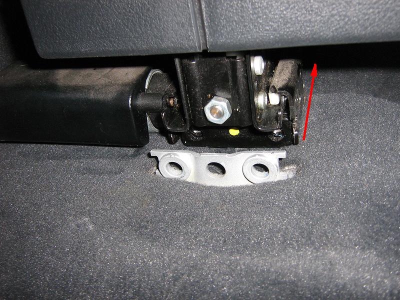 След премахването им се местим в предната част на седалката. От долу я държат 2 болта, отвиват се с гедоре 13мм.