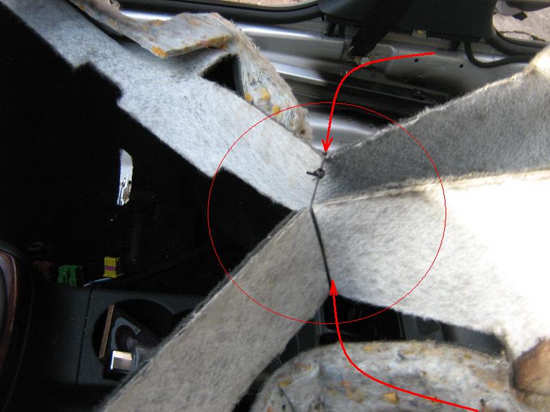 8. Дойде време за вдигане на мокета. След като сме го освободили от праговете, той спокойно може да се повдигне. Не знам защо се е налагало на някои колеги да го режат, аз успях да го повдигна без рязане. Не ми е пречил изобщо по време на работата. Кабелите които трябва да прегледаме заради проблемите с комфорт модула и не работещите функции, се достигат спокойно ето по този начин: