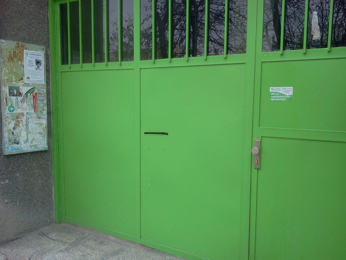 Държа да отбележа, че наскоро Деси лично купи боя, изстърга всичко от вратата и от цялата дограма и я боядиса в готин зелен цвят. Входът на блока ни стана много по-приветлив. Съседните входове също последваха примерът ни и и те си освежиха своите. Утре ще кача и снимки.