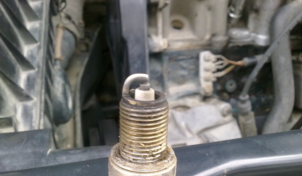 4. свещите - ако вкарва масло в цилиндрите или прекъсва кабел или капачка и палец,пак така ще прави и свещите ще са различно износени и с различен цвят.Същото важи и ако цилиндрите са различно износени (компресията). Нормално е да са черни ако палиш на бензин, защото както вече казах,колата ти не работи изобщо правилно на бензин :) .Ако свещта е бяла и като погледнеш през дупката,челото на буталото няма никакви нагари и е чистичко като снимката на колегата - вкарва и гори по малко антифриз (вода) в този цилиндър. Ако са светло кафяви - нормално горене на газ. Ако са черни - не гори добре или гори масло.