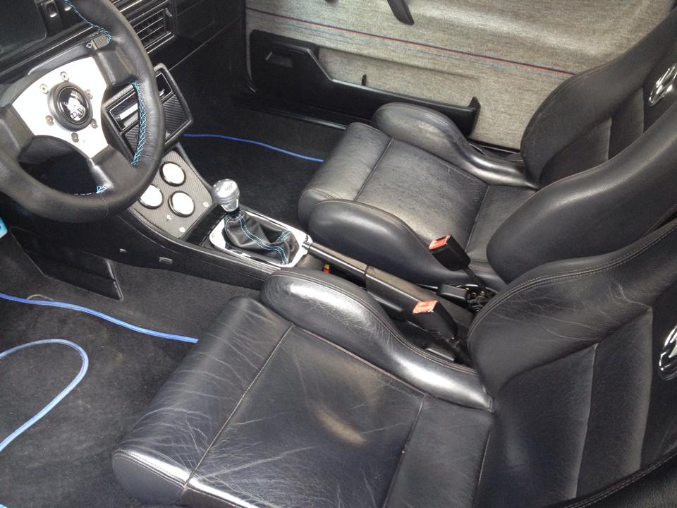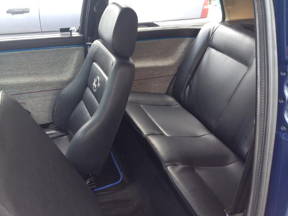 Хайде волана и задната седалка са готови...остана маншона на скоростния лост и тавана с корите,и да намеря някой да се хване да ми тапицира тия емблеми на седалките в черно със син конец,а и син кант на таблото да е в тон