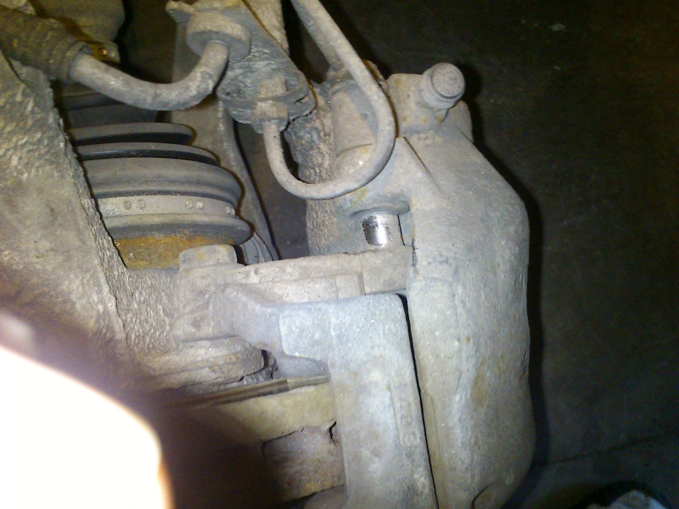 Следва основно почистване на всички повърхности на апарата и сваления супорт. Минаваме ги много добре с телена четка, особено супорта и местата на които се хващат накладките. Почистваме също и ушите в които влизат маншоните на водачите. Там лично аз преди да вкарам маншоните намазах с медна грес за по-нататъчно предотвратяване на ръжда. На едната снимка има стрелка която показва начина на слагане на маншоните на водачите.