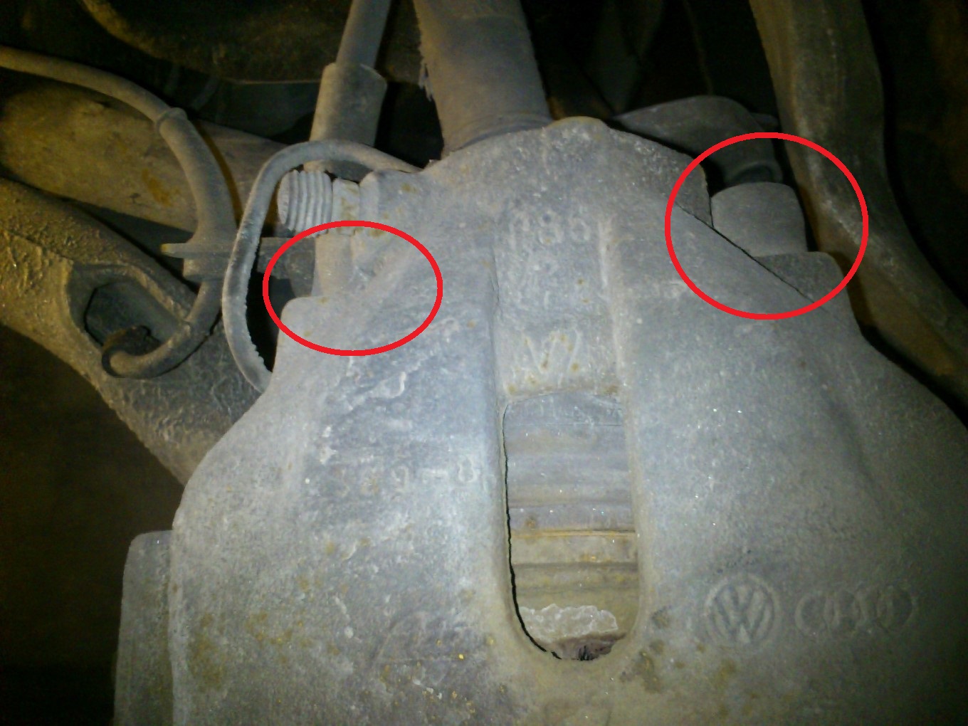 Апаратите уж бяха пипани преди около 50к километра. До колкото си спомням в сервиза тогава слагаха Топран части, и в последствие забелязах как тапата на водачите е толкова хлабава, че влиза вода и боклуци в маншона. При разглобяването се оказа, че всички гумени части са оригинални и с марка ATE. Явно се оказа, че апаратите не са пипани от както са станали такива. Същата процедура съм направил и на задните но забравих да снимам тогава :) Пружините за АТЕ 57 в Пловдив са неоткриваеми освен в Порше, чакам утре отговор от София дали могат да ги намерят и ще пиша допълнително :)