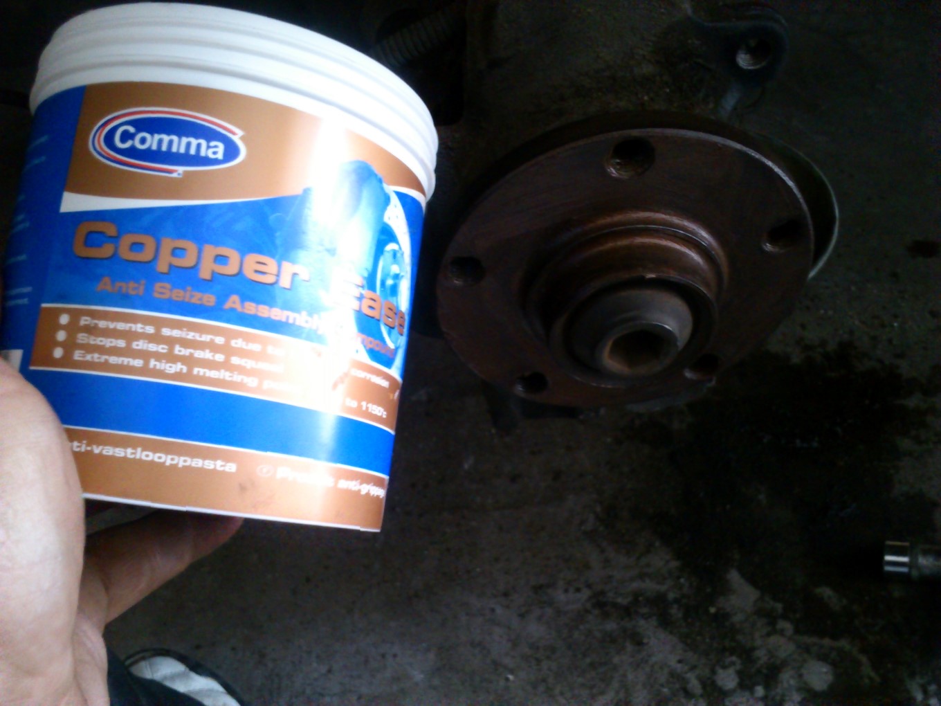 След като вече е монтирано буталото започва слагането на супорта. Предварително съм изчистил всички легла, уши и резби с телена четка и след това със спирт. Намазах самата главина много малко по лицето на което ляга диска с медна грес. Слагаме диска и захващаме супорта.