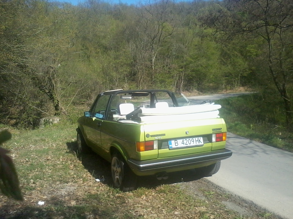 Oригинално GTi/GLi кабрио с 1.8 DX мотор. Двигателя е оригиналния за модела - К-Джетроник пълна "механична" инжекция, но е повече от 112 кончета (тунинг в Германия) - по-агресивен разпределителен вал, по-висока степен на сгъстяване, пърформанс изпускателна система и т.н. Колата е реставрирана от братя Васкови от Габрово. Същите притежават и една от малкото оцелили в България състезателни Шкоди 130 RS (в перфектно здраве - показаха я на ретрото в Бургас миналото лято). Единичката е реставрирана изцяло - както ламарини и боя (боята е Дюпон), така и всичко останало - спирачна система, окачване, цялото оборудване около двигателя на практика също е ново - съединител, спирачни дискове/накладки, ремъци, маркучи и т.н. Гюрюка е нов (бяла кожа и внос от Англия с голям секурит отзад), а салона е много запазен - комбинация от бяла кожа с промазан плат. По колата на практика всичко е оригинално и работи. Динамиката е чудесна - по GPS ускорява до 100 за под 8.5 секунди (на 2ра прави точно 100 и прекъсвача на делкото се включва :)). Какво друго - ами тези дни я обухме с едни хубави ATSки, а се очертава до няколко дни да и взема и едни 14ки AVUS (също ориганлни за годините и модела).