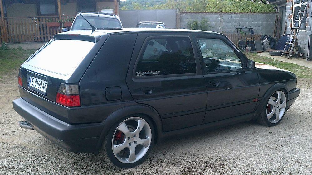 здравейте колеги от името на един колега и мои приятел (минката82)които ме помоли да му направя тема на колата му щото няма време и възможност,а тя е голф 2 1.8 16в КР много хубава кола 1991година,с 4врати, като екстри има централно заключване,аларма,ел. стъкла,рекаро седалки в последствие се смениха с кожени седалки и след това с дълбоко рекаро от голф 3 гти едишън,15ки джанти след което ги замениха 17 цолови с гуми 205.40.17,спортно окачване КВ след което последваха койловери,колата беше с км-траж до 8хиляди оборота и 260км случайно намерихме дигитално табло и го монтирахме него, решихме да направим нещо по различно по колата а то е стъкла от 2врат голф 2 които монтирахме с малко рязане и преправяне на задните врати,също в спойлера на багажника беше вграден 3ти стоп който стана много оригинален