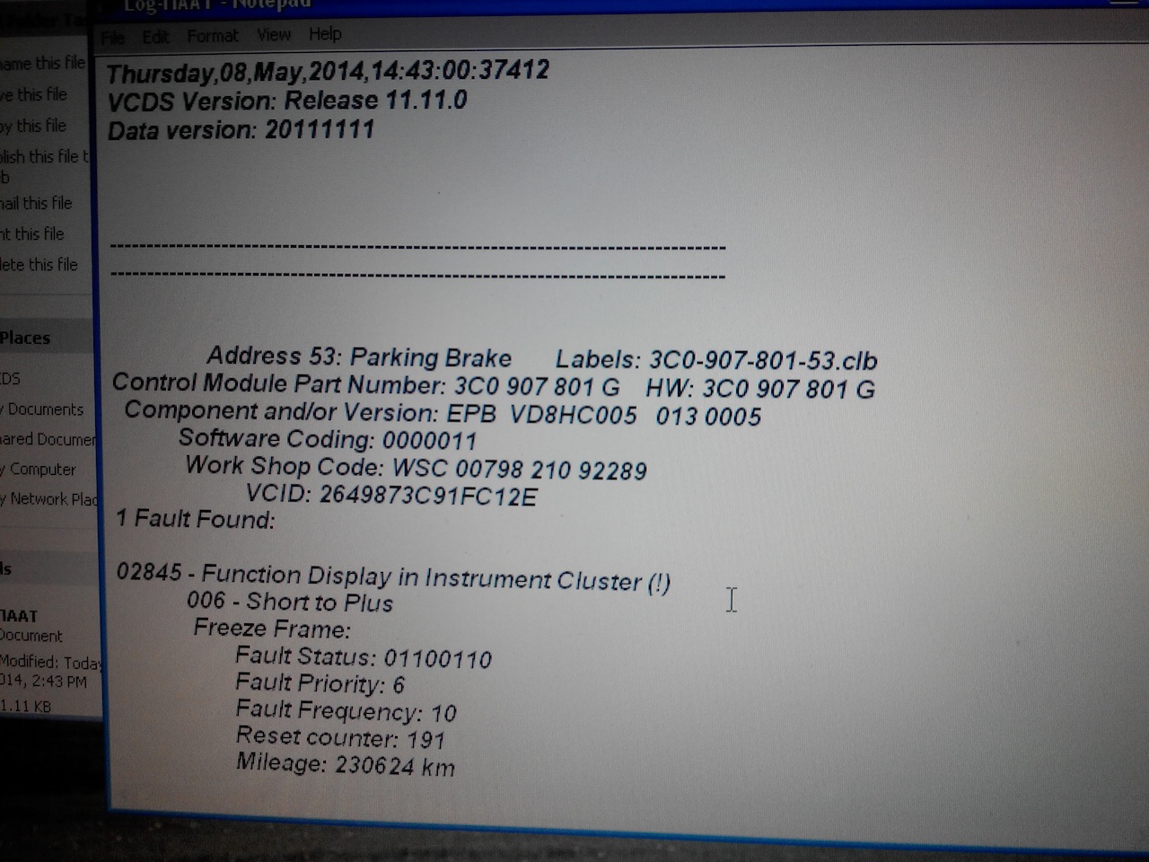 Разкачам акумулатора за 1 минута ама не ще да се маха.Бързо при електричара.Закачи я и като излезе резултатът майсторът каза , че е нещо свързано с модула управляващ ръчната спирачка но не знае какво точно а грешката не позволява да бъде изтрита.Влезе и в сайта на Ross Tech и там за нея пишеше нещо от сорта , че въпросната е описана във фирмените протоколи (демек само в сервиза на ваген могат да ми кажат за какво става въпрос).Колата иначе си я карах цял ден и не показа никакви признаци нещо да и има - движи си се нормално , просто лампата си свети - нито пиука , нито мига , нито ми излиза някакво съобщение.Въпросът ми към вас е : някой сблъсквал ли се е с подобен проблем и оторизираният сервиз единственото решение ли е? Прилагам и снимки : първата е от сайта на Ross Tech а втората е протокола на VCDS диагностиката.Разчитам на помоща ви