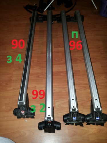Предните греди изглеждат абсолютно еднакви - захващане, дължина, пластмаси, докато задните са различни. Първата разлика е в захващането. За 4 врати е както предната греда, но за 2 врати захващането наподобява на скоби.