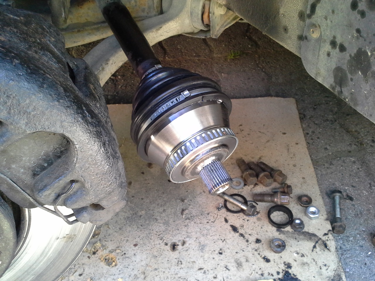 п.с. проблем ми представляваше да сваля дясната полуоска, след развиване на всичките 6 болта от чашката на вътрешното каре и развиване на болта от външното каре не можеше да се вдигне края откъм скоростите до степен да се извади външното каре от главината.