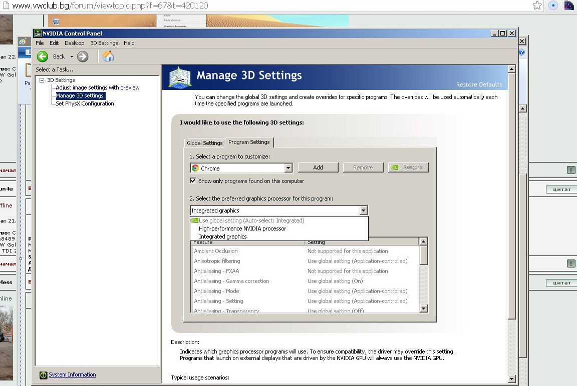 Драйвери има инсталнати,като цъкна десен бутон на десктопа ми излиза контролния панел на Nvidia и след като задам да е постоянно включена резултата е никакъв