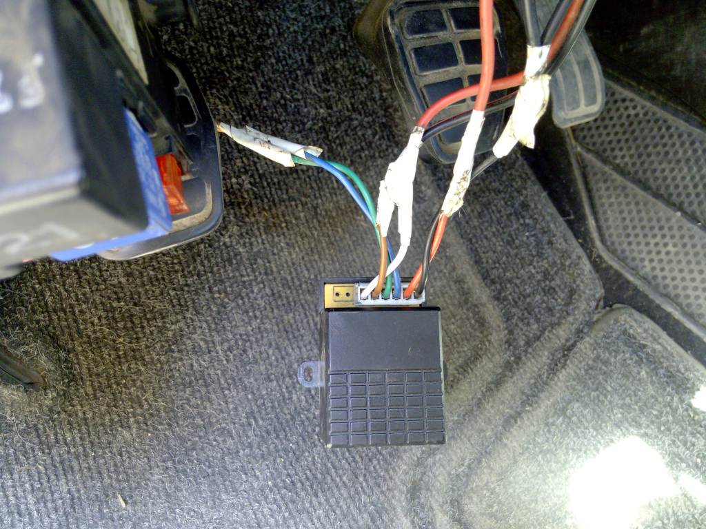 Прикачам ти редактирана снимка от твоите на алармата. Двата кабела, които съм ти означил са прекъсването на 12+ за бобината, 12+ за ключето за газта се взимат също от там, затова и то не работи.