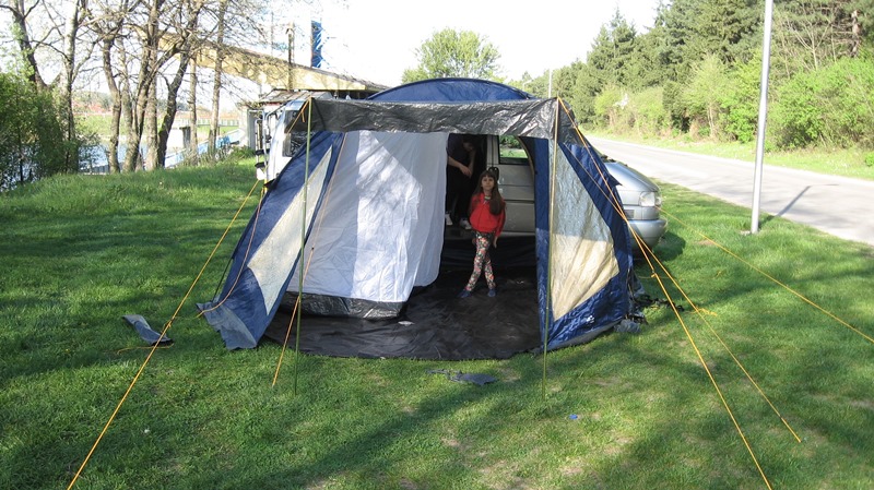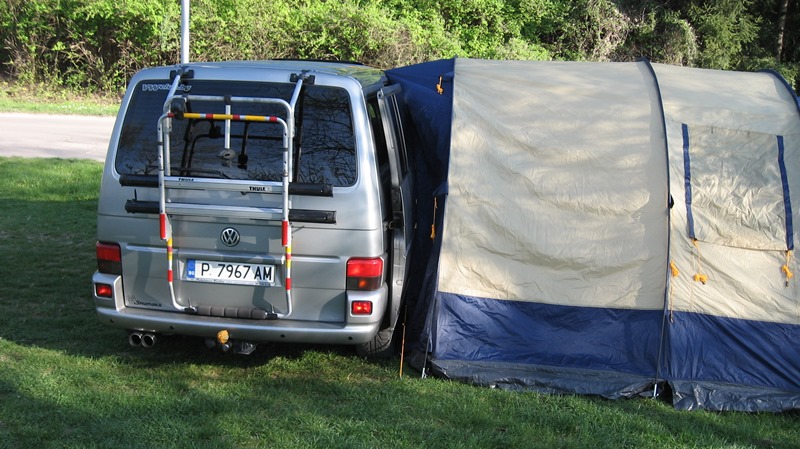 и палатката е слаба работа и няма да спре дъжда ако завали.Палатката под тентата може да се монтира пожелание.