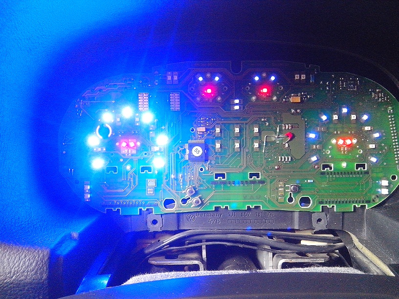 Колеги смених таблото на голф 4 с такова с бордови комп. И на новото табло се оказа че не светят половината диоди. Купих диодна лента без силиконово покритие и сега мисля да ги отпоя от лентата и да ги запоя на таблото. Та въпроса ми е дали ще станат тези диоди? Същите са като на снимката на колегата от по-горния пост. Трябва ли резистори за тях както са на лентата групирани по три броя или на таблото си има запоени и трябва да подменя само диодите.