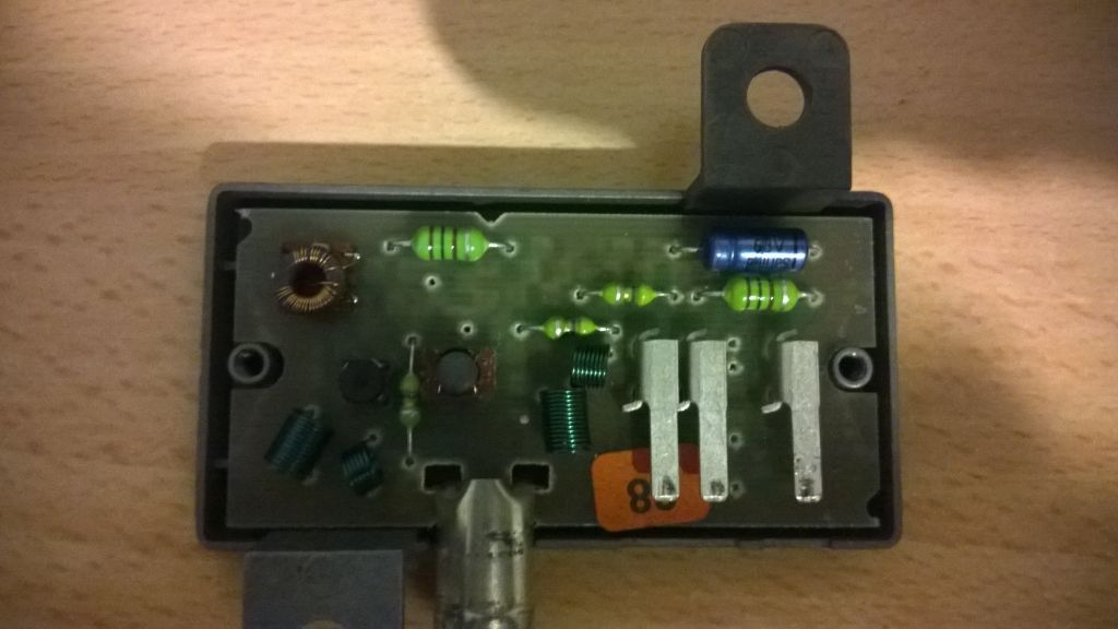 Специално на моето като го гледам има разлика кое е на "антената" и кое е на подгрева на стъклото, но по скоро понеже на едното място се появяват +12, затова него край е прекаран през кондензатор, за да се отдели.