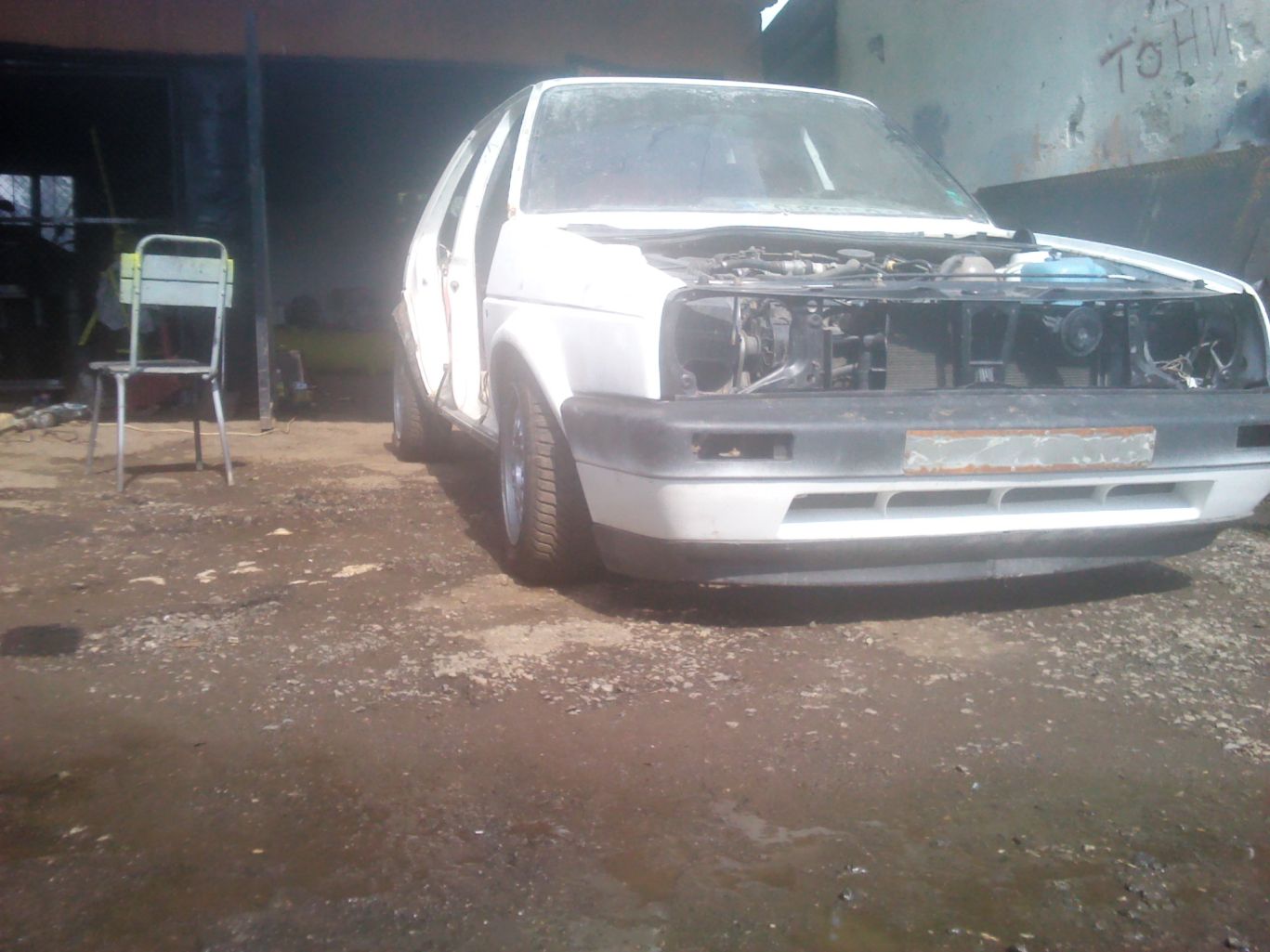 Искам да ви покажа моя скромен проект VW Golf II GTI 8v.Като цяло купето беше в добро състояние,без ръжди и удари.Извадих му салона,свалих врати,калници общо взето всичко което може да се свали за подходяща обработка и боядисване.раздух предните вежди на калниците и сега работя по задните.Препипах и ходовата част,оказа се че задния мост не в добро състояние и го замених от Голф 3 и се оказа по широк.Ето и малко снимки какво съм свършил до сега.