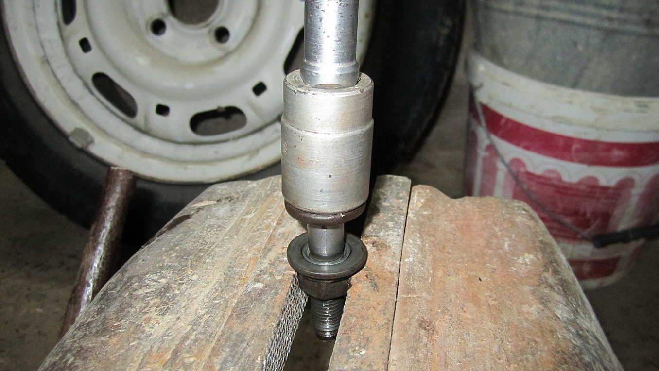 като се развие гайката, се сваля капачката и вече се вижда тампона на макферсона