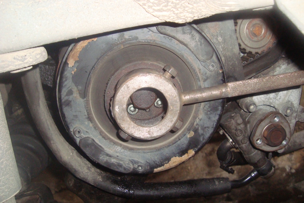Колега само да спомена ,ако случаино си отвил болта на коляновия вал с тия инструменти,значи не е бил стегнат.Тои се сменя винаги с нов и се стяга с 50кг.което с тая тресчотка и господ няма да може.