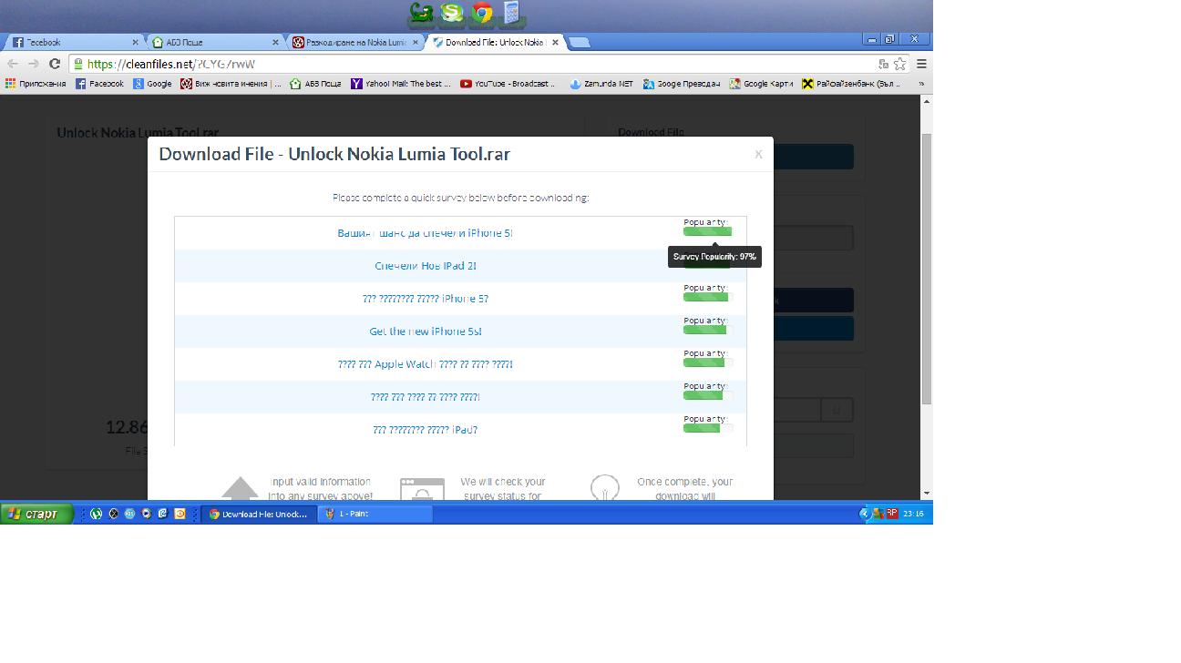 Да, ама ми отваря някаква страница, където трябва да пратя СМС за да спечеля I-phone5 и след като попълня някаква анкета/проучване/ ще мога да сваля файла, пълен ташак ако ме питаш...
