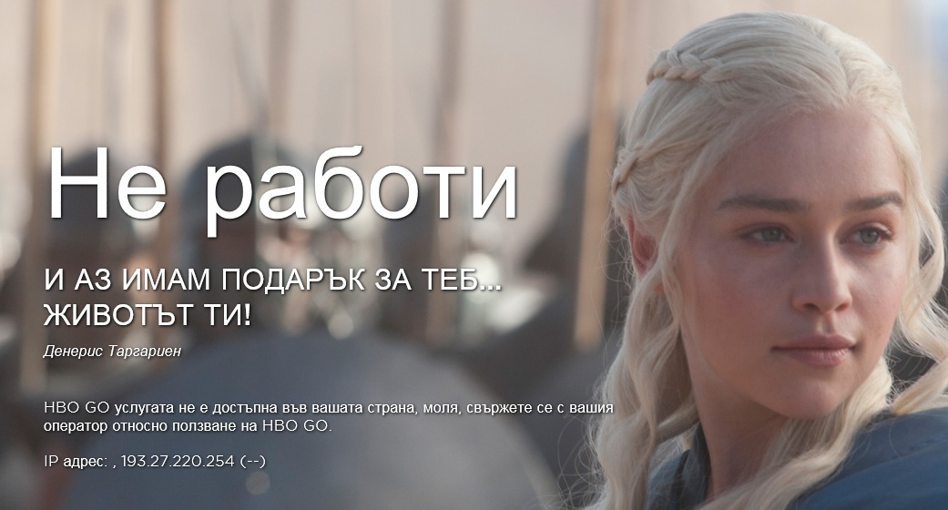До скоро при мен приложението работеше, а сега след като го стартирам ми изписва: За съжаление от вашето моментно местоположение не можете да използвате Hbogo. Можете да използвате само в държавата, в която имате валиден абонамент.