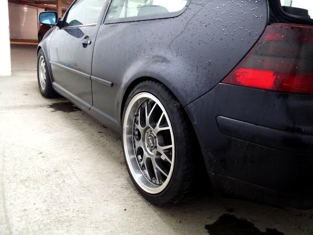 Продадох 16ките BBS Montreal и взех 18ски , 8.5J ET35 с гуми 225/40. На снимката отзад е и с 5мм фланец.