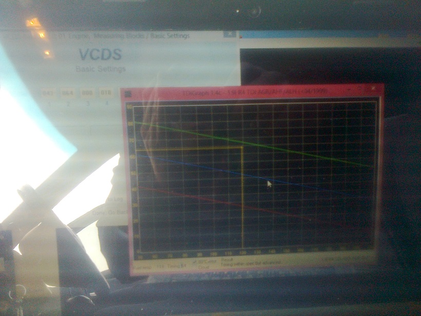 Това е графика от центровката, което принципно няма отношение с чипа, а по скоро със смяната на ангренажен ремък. Идеалният вариант е между зелената и червената линия. Трябва да си поиграете малко докато го нагласите. Не е фатално, но е препоръчително.