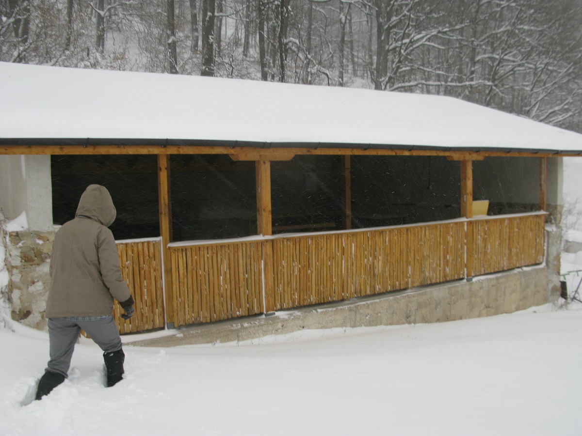 За вечерта ,за гала вечерята ще сме под големия навес , който ще ни побере всички. В него има голямо барбекю, на което ще изпечем мръвките.Ще е хубаво да си носим по някое чувалче с дървени въглища...за него. Ето снимки и на навеса.....