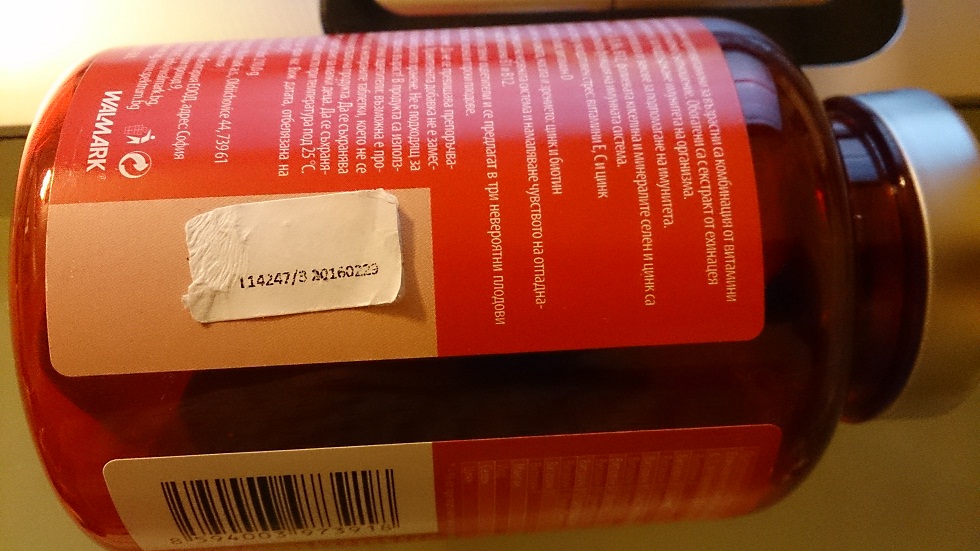 Значи, днес по обяд жена ми си пазарувала от аптека САНИТА, гр. Благоевград, и избрала за мен мултивитамини Spektrum на производителя Walmark, изложени на "промоция" на цена от 15.92 лв... До тук добре, докато преди малко реших да си пийна едно витаминче и почнах да разглеждам шишето. Потърсих срок на годност и успях да видя единствено едно етикетче като от тези за цените, със надпис на него: 114247/ 3 20160229. Помислих си че са годни до 2016 02 29, но оглеждайки забелязах че под самото етикетче има друг надпис на самата опаковка на шишето - EXP 02 2015