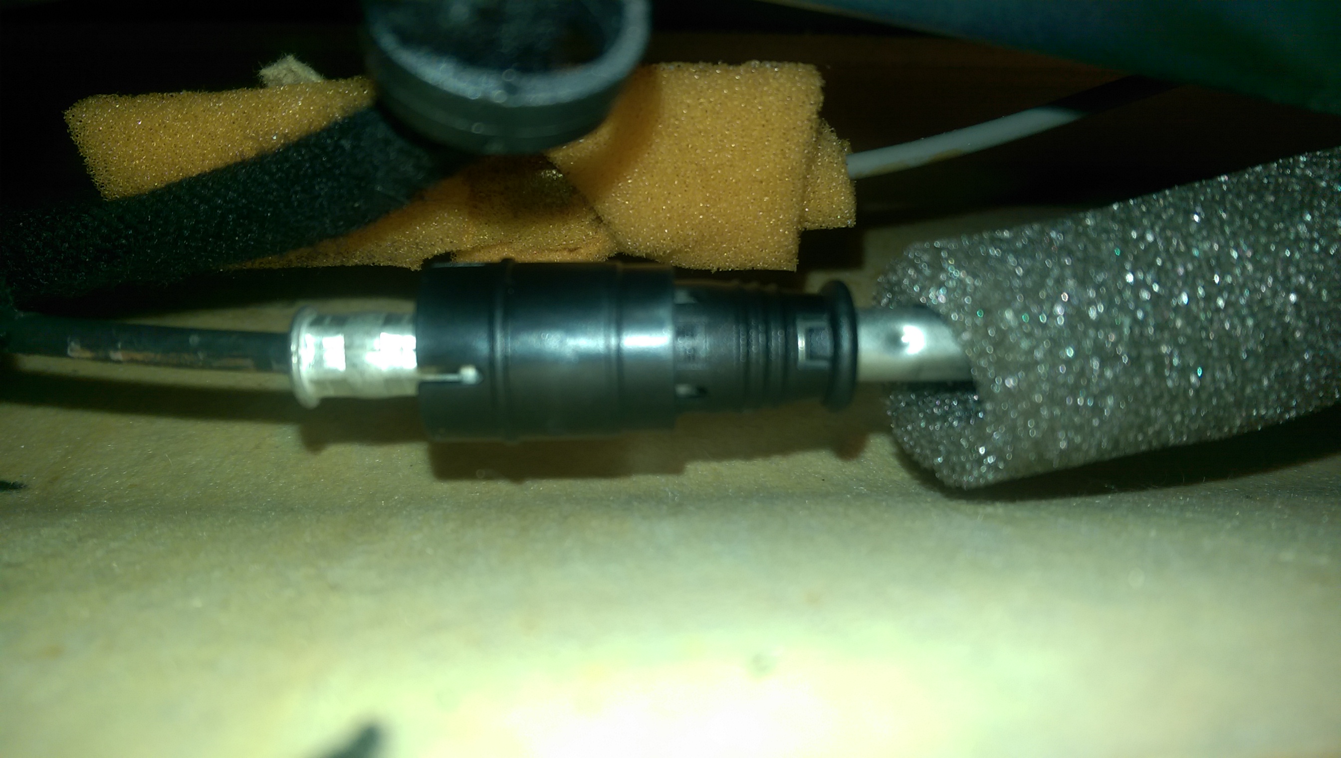 От антената излизат три кабела. Два коксиални и един захранващ. Коксиалните са два защото единия отива към радиото а другия към телефонния модул който е имала някога колата. Тези които са нямали телефон, този втория коксиален кабел го нямат. Третия кабел е захранващ. Странно, той беше навит на топка и не беше закачен никъде а и към него не идваше никакъв кабел. Просто висеше празна кабелна обувка. А защо няма....и идея нямам. Опитах да проследя коксиалния кабел на антената и да открия липсващия кабел , той тръгва от покрива , по задна лява колонка, и тръгва по прага до отпред до радиото, но върви само той единствен. Дръпнах за проба от радиото един кабел и подадох захранване 12V на антената. Резултат почти никакъв.....само обичайните седем станций, които си бяха и до преди да разглобя всичко.