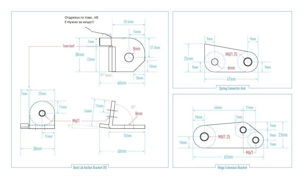 1. Нови амортисьори за багажник с характеристики (по-силни от оригиналните които са 500N)