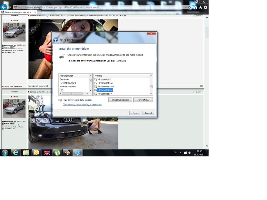Машината мина от XP na WIN 7, обаче не успявам да подкарам пустия стар принтер HP Laserjet 5N. Нещо не мога да открия драйвери за него. Дръпнах някакви уж универсални от страницата на HP ама нищо не стана. Гоооглето го разрових цялото и пак не намерих нищо.