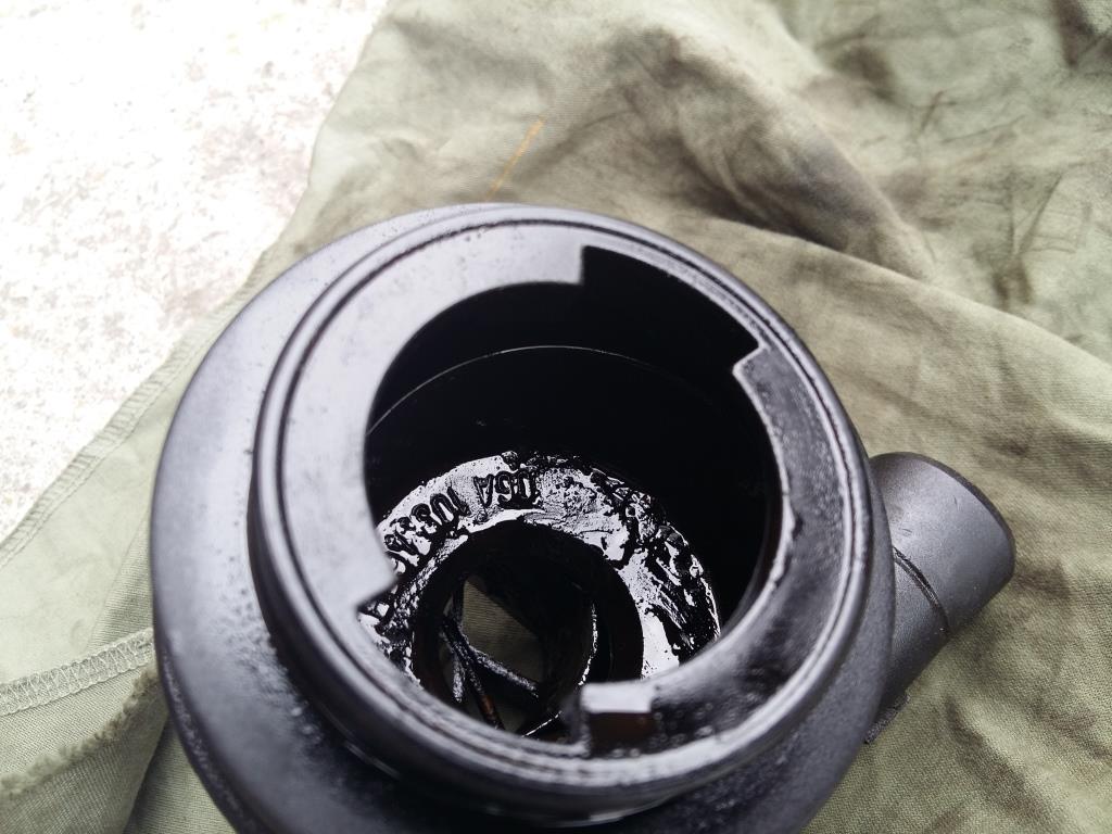 Почисти хубаво тази гърловина.През нея минават картерните газове и отиват във въздухопровода посредством гофриран маркуч и оттам през дроселклапата и т.н.Провери дали не е запушена и клапата в края на гофрирания маркуч .Под гофрирания маркуч има едно по малко не е гофрирано то трябва да смуче при работещ двигател. Картерните газове трябва свободно да влизат от тази гърловина във въздуховода.Гарнитурата която е отдолу не към капачката си я смени ако тече.Аз си направих от маслойстойчива гума(лесно става)премери само дебелината на старата гарнитура да видиш колко трябва да е дебела че забравих колко беше.Не виждам смисъл да се сменя капачката за маслото под нея има гарнитура ако е зле може и тя да се смени.Гърловината да я сменяш, не виждам смисъл ако не е счупено нещо по нея.