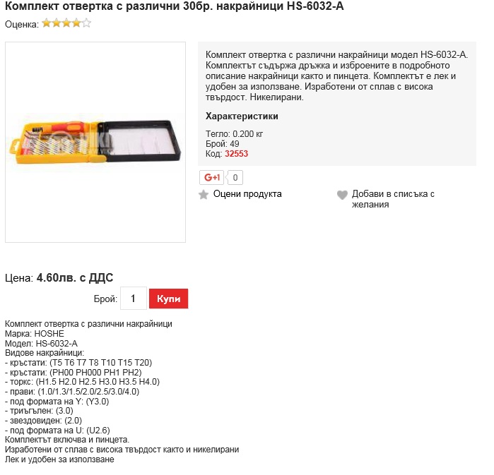 В Комет цените са като за истински инструменти, а на мен не ми се дават повече пари за отвертка, отколкото ще дам за новия дисплей на телефона. Не, че не си заслужава, но вероятно никога повече няма да ми се наложи да отварям такъв телефон.