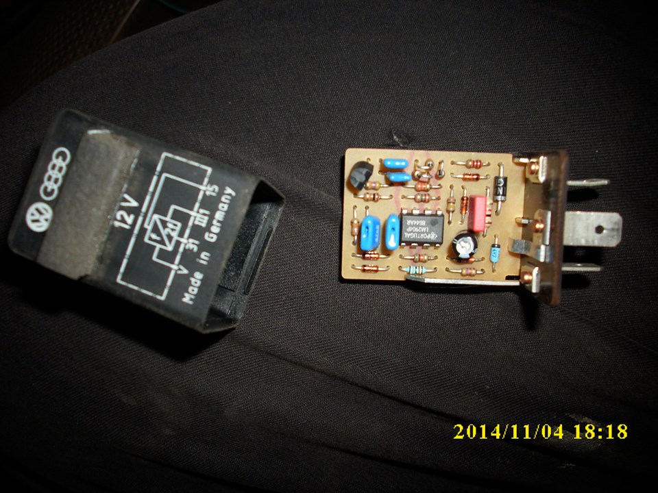 Ето го странното реле което предполагам че е за осветлението на оригиналния касетофон защото отиваха 2 кабела синьо-бял и кафяв към буксата за касетофона и имаше и още 2 същите като цветове завършващи с същата букса висящи така и не разбрах за какво са точно.Ако някой може да каже ще съм благодарен! :question