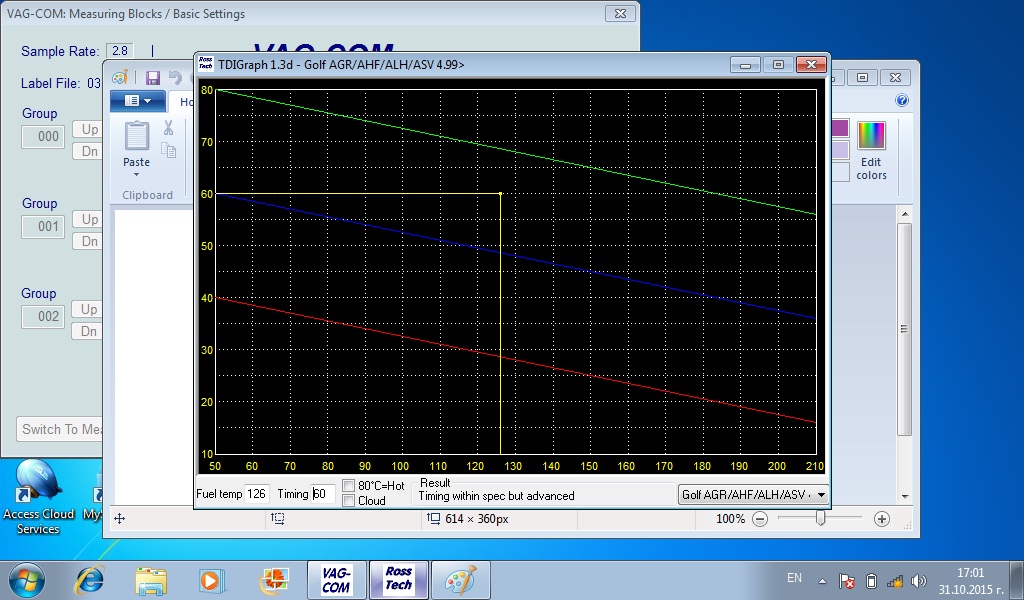 За мен изобщо не ти работи като трактор мотора,просто тези мотори с роторна помпа са си малко по шумни,особено когато са свалени и корите му ,и центровката е към предварение както ти е сега нагласена.Към закъснение ще ти работи по-меко мотора,но е по-добре да е малко към предварение. Аз карам такъв голф с ARG двигател-90кс над 100000км вече ,и центровката съм я направил малко към предварение между синята и зелената около 60-62....имам и пусната тема за центровката.В момента моята центровка е едно към едно със твоята,но зимата не пали както лятото само при подаване на ключа,в смисъл ,че с една идея повече върти докато запали,за което си мисля,че е напълно нормално.