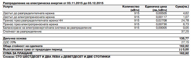 Сега си проверявах последната сметка за плащане - 55.56 лв. Би трябвало да е за периода 21.12. - 21.01. Доволен!