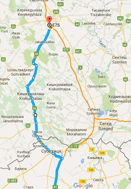 София - Белград - Суботица - Томпа и качване на магистралата при Кечкемет.