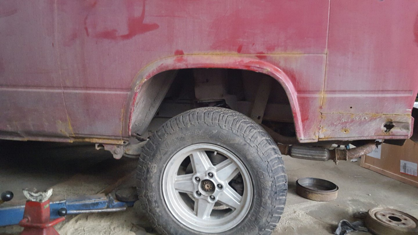 Относно амортисьорите - здрави са, но понеже буса е живял в Австрийски условия, ръждата е изяла "шапката" и гледката е ужасна :redface но малко по-натам ще ги сменим и тях. Ако не се намерят подходящите размери, ще действаме, като Ванката, с допълнителни планки :gruebel