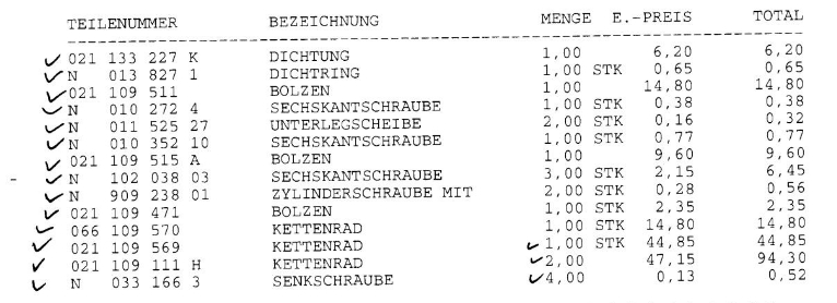 Отделно от това ми трябваха зъбни колела, които ги взех от VW директно, плюс дреболии, цените са в евро: