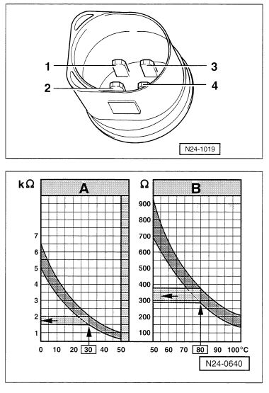 Измерването се прави с Омметър на пинове 3 и 4 от прикачената снимка(двата пина откъм облия ръб на сензора), като това е посочено за температурата която чете ЕКУ-то, но не мога да кажа със сигурност дали стойностите за таблото са същите.
