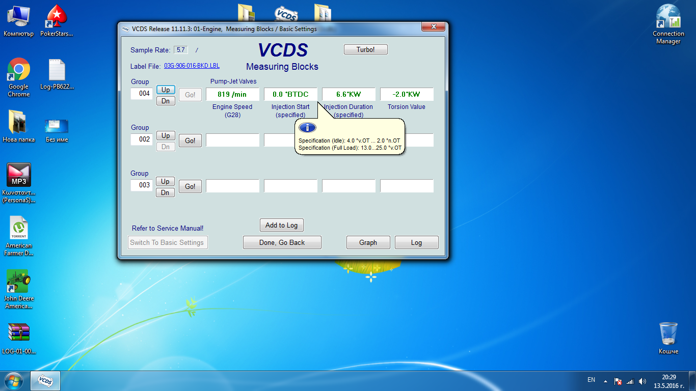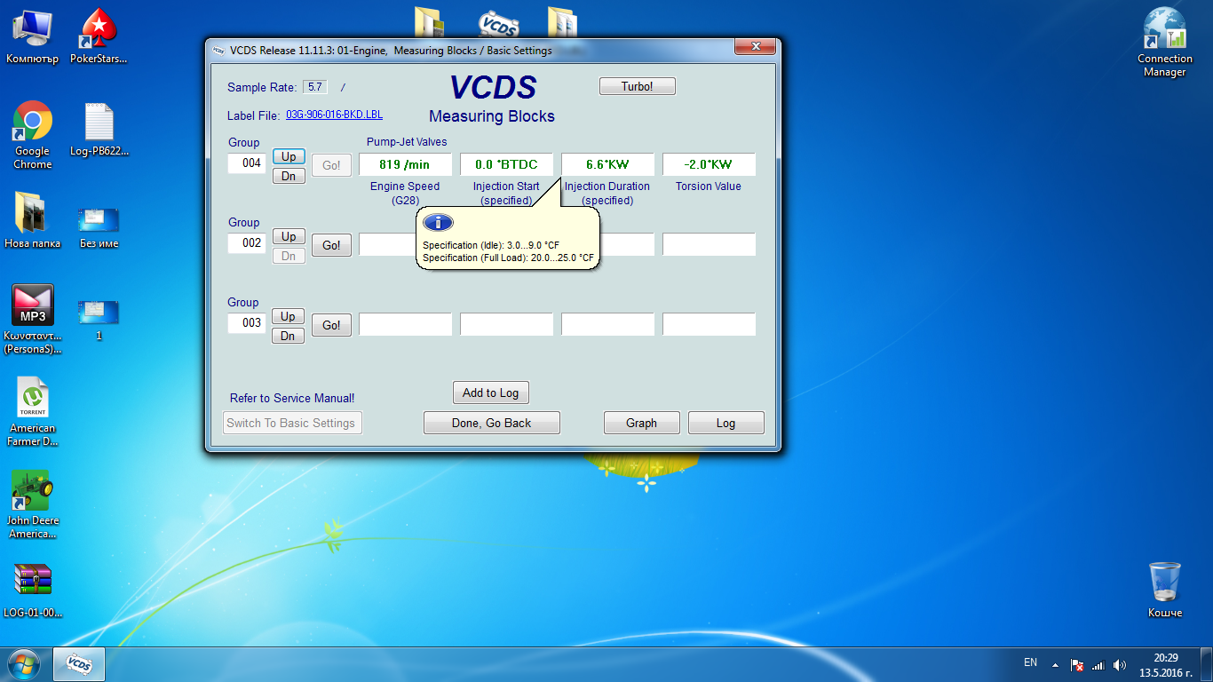 Тук говорим за двувалка и промяната на синхронизацията, която се извършва от всмукателния вал НЕ води до промяна на моментното впръскване на празни обороти и респективно показанията на бор компютъра. Това което говориш се извършва с изпускателния вал и с леки корекции се настройва впръскването на празен ход.(при старите версии на компа около 5мг, а на по-новите трябва да са около 6мг ). Пак казвам разлика няма как да се усети, защото е много малка, има я но е малка. На предварение на около 3 и малко над 3 градуса колата върви малко повече, но и харчи малко повече, на закъснение е по икономична за сметка на вървежа. Имаше и един пич в западен форум, който си беше играл да си прави експерименти и на дино и беше показал разликите от порядъка на по спомен 5 коня, само че 5 коня малко трудно се хващат особено на път. Като цяло на предварение от около 3 градуса колата става малко по респонсна и пъргава, но пак казвам това трудно се хваща от повечето хора. БКД двигателя работи най-добре около до около -2 градуса...това е най-често поради всеобщия проблем с вибрациите (поклащането на празен ход, който е изразен явно в двигателите 2.0 тди без баланс валовете в картера, монтиращи се в голф, ауди а3 и т.н.) Това го пиша като изключвам проблеми с горивната система или разбит маховик, защото тия двигатели тресат и със здрави маховици. Всичко, което пиша е на база над няколко стотин хиляди километра опит с тоя двигател и много модификации и експерименти. Към колегата с повечето въртене при първо стартиране...виж си акумулатора и си провери стартера...стартерите са два вида на този двигател на Валео и на Бош. Този на бош е много по-добър и след обслужване ще пали с огромна сила. Особено при топло палене този двигател трябва да пали меко, без вибрации, но при износени стартери се получава сериозно притрисане при самото запалване.